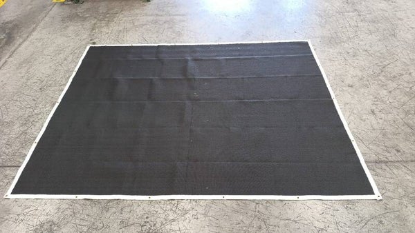 Lona Ignifuga para uso horizontal de 186x244 metros, resiste altas temperaturas, hasta 1,200ºC, escoria de metal fundido, gota de soldadura, salpicadura y chispa de soldadura. Lona Ignifuga resistente al fuego directo de un soplete - Lona ignifuga para trabajos de soldadura en altura o a ras de piso, cumple con la norma ANSI FM 4950 - norma NFPA 701 - norma UL 214, 723